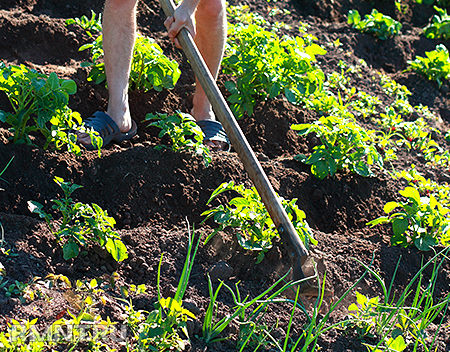 Окучивать картоху по непаханной земле не тяжко ли...? |