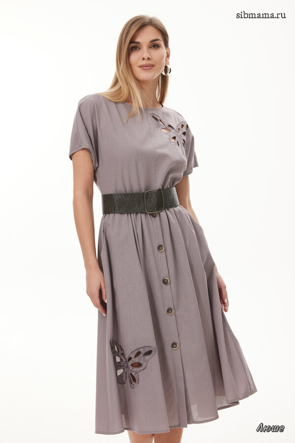 42-50 6100 Классическое платье из льняного полотна, отрезное по талии, с боковыми карманами, по нижней части оборка. Нижняя часть платья с центральной застёжкой на петли и пуговицы. Верх и них платья декорированы дизайнерской вышивкой.