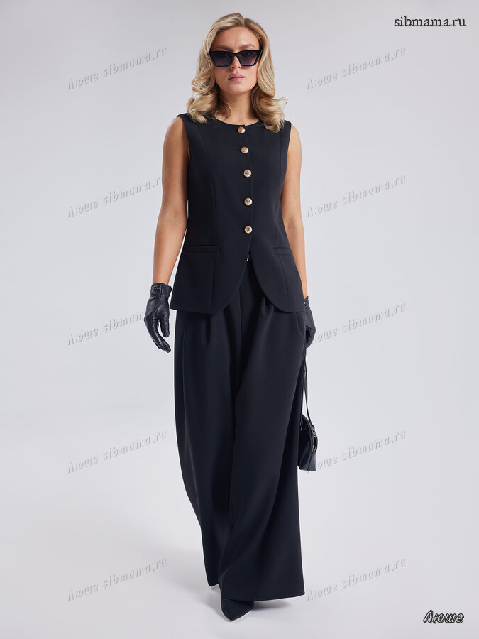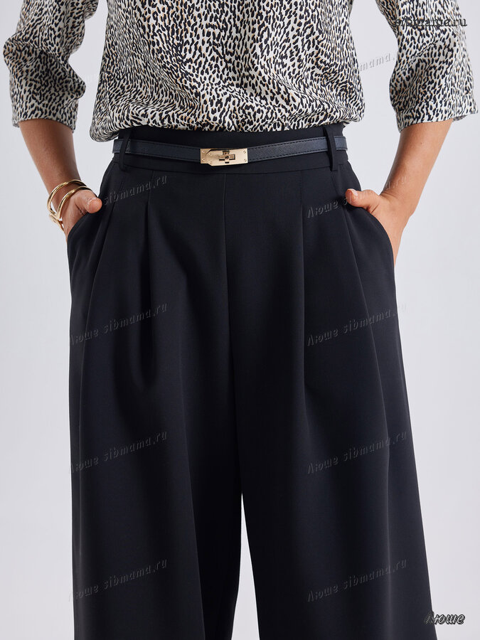 Элегантные эффектные женские брюки,благодаря широкому расширенному крою модели, являются заметной деталью любого Вашего образа,привлекают внимание, а также помогают выделится,создают шикарный запоминающийся облик.Частично застроченные складки по поясу подчеркивают благородный и изысканный характер.Для удобства и комфорта ношения пояс модели частично обработан декоративной резинкой,обеспечивая идеальную посадку на любой фигуре.Выполнены в однотонном универсальном базовом черном оттенке.Их многофункциональность,безусловно,является одним из самых больших преимуществ.Модель,способная воплотить в реальность любые Ваши повседневные и оригинальные образы.Скрыть