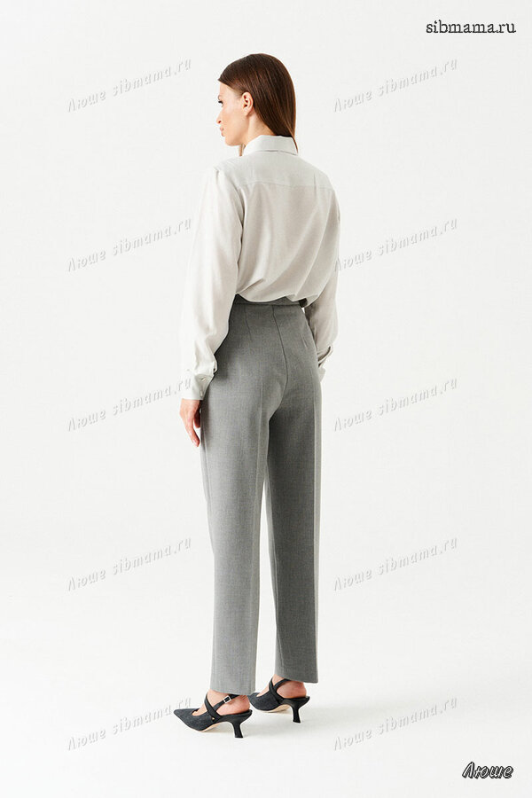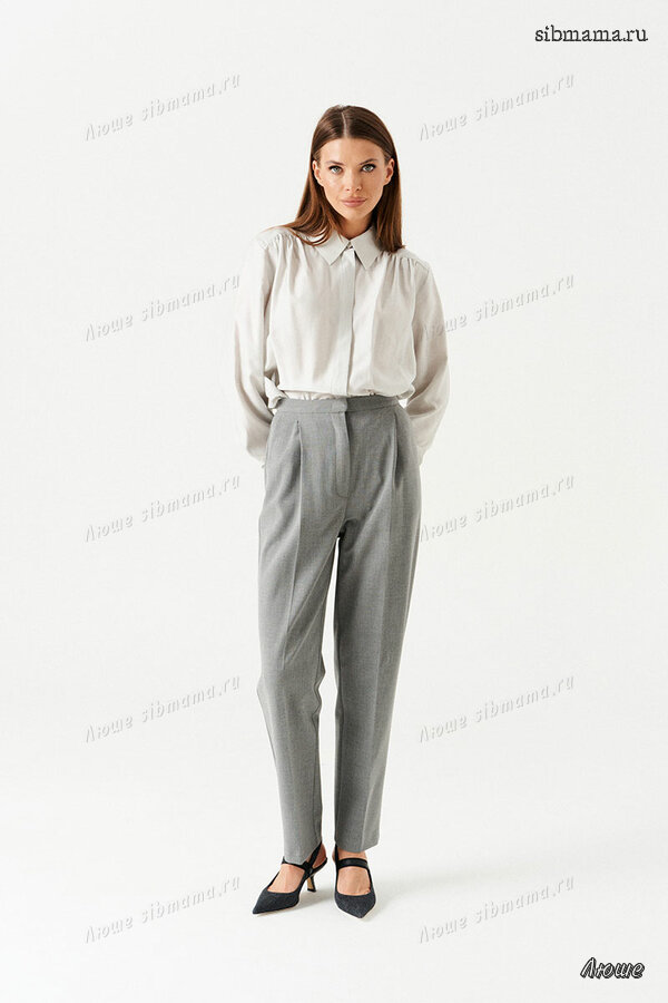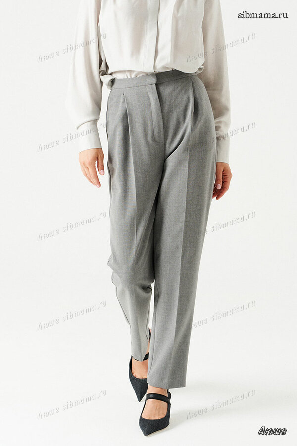 2361 брюки женские серый 44-54 65%ПЭ 28%вискоза 7%спандекс Брюки женские, свободные, слегка зауженные книзу. На передних половинках заложены складки, направленные в сторону боковых швов, боковые карманы с отрезным бочком. Застежка – гульфик на молнии. На задних половинках талиевые вытачки. Пояс притачной, со шлевками и частично с резинкой, застегивается на крючок и петлю.