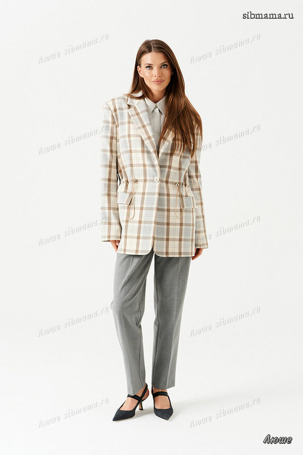 3880 жакет женский мультиколор 44-54 64%ПЭ 34%вискоза 2%спандекс Жакет женский, приталенный, свободный, с центральной застежкой на 1 петлю и 1 пуговицу, отложным воротником и лацканами пиджачного типа, длиной ниже линии бедер, на подкладке. Приталенность достигается за счет кулисы с резинкой на фиксаторах. По переду – прорезные карманы с клапанами и двумя обтачками. Спинка со средним швом. Рукав втачной, двухшовный.