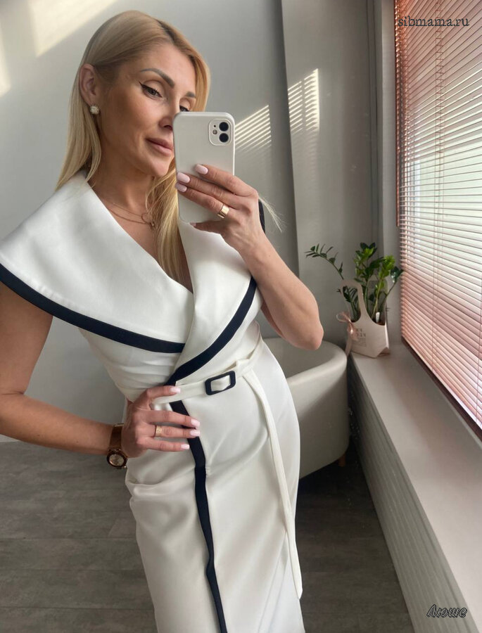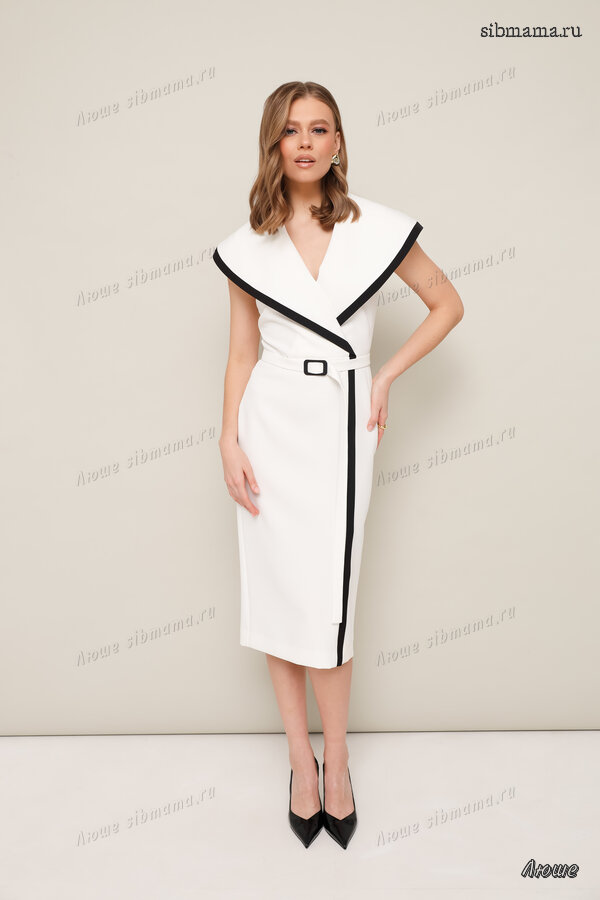 11-352 42,44,46,48 Состав: ПЭ 97%, спандекс 3%. Элегантное платье прилегающего силуэта отрезное по линии талии, выполнено из костюмно-плательной ткани. V-образный вырез горловины с имитацией запаха, с углубленным воротником шалевого типа, прикрывающий руки. По краю воротника и в вертикальном подрезе юбки обработана отделочная деталь контрастного цвета. Спинка со средним швом, переходящим в шлицу.