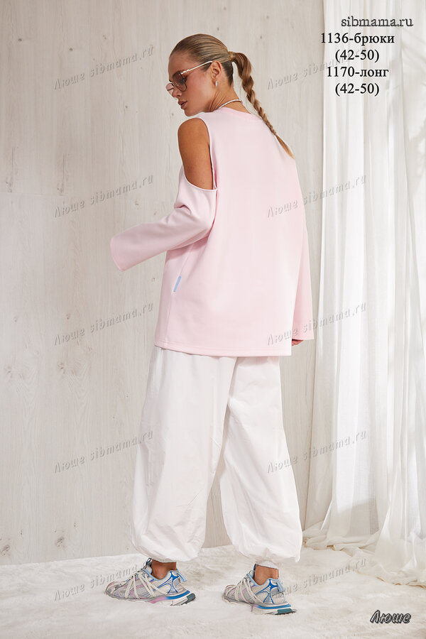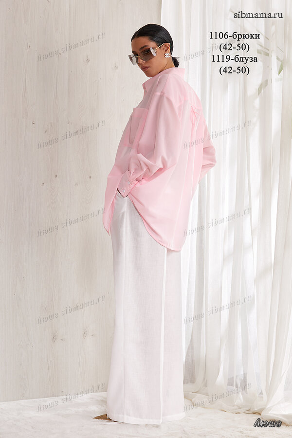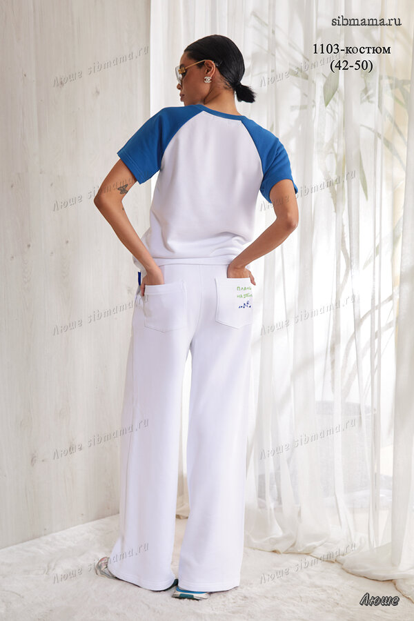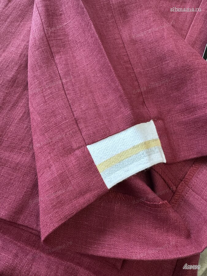 5336 костюм женский 2-х предметный (блузон + брюки) 25294-2003 бордо 44-52 100% лён Костюм 2-х предметный, состоящий из бомбера и брюк. Бомбер свободного объема, прямого силуэта, с центральной застежкой на тесьму-молнию, на подкладке. Вырез горловины обработан планкой из контрастного материала. Детали переда с накладными карманами. Спинка с притачным поясом из контрастного материала. Брюки свободного объема, слегка заужены книзу. Детали переда с прорезными боковыми карманами. Брюки с отрезной боковой частью по всей длине. Нижний срез боковой детали обработан притачной деталью из контрастного материала. Детали спинки с фигурной кокеткой, в которой обработаны прорезные карманы. Пояс притачной, на резинке по спинке. Длина блузона на модели вдоль середины спинки — 64 см, длина брюк на модели вдоль бокового шва с учетом пояса — 102 см (допустимое отклонение +/- 1 см)