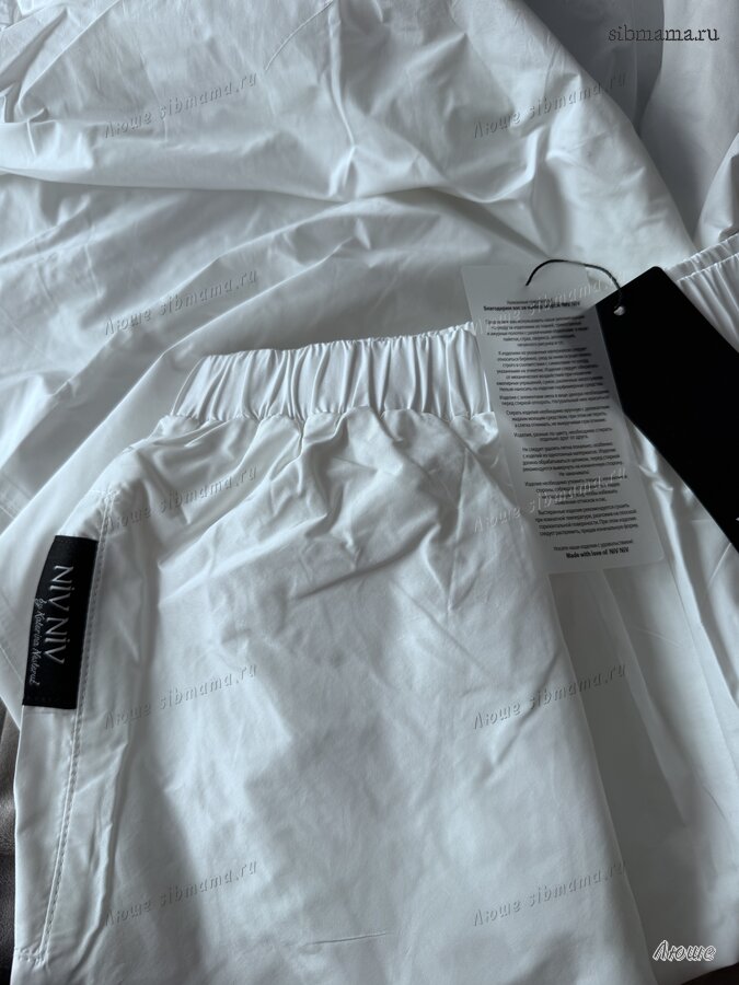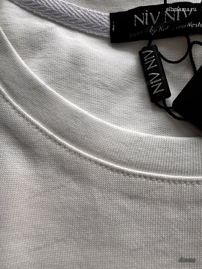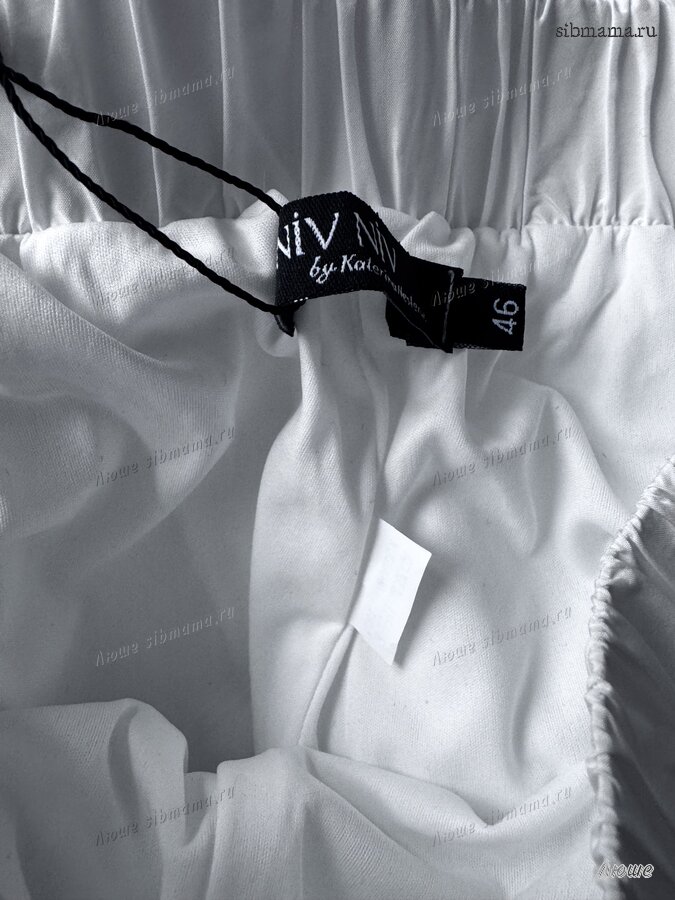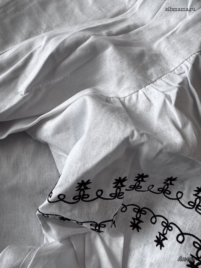 13002 блуза женская 25294-2003 бело-коричневый 44-54 100% хлопок Блуза умеренного объема, прямого силуэта, с круглым вырезом горловины. Горловина обработана окантовкой, переходящей в завязки на спинке. Спинка со средним швом. Рукав втачной, одношовный, короткий, с вышивкой «Тесьма». Нижний срез рукава обработан притачной манжетой. Длина изделия на модели вдоль середины спинки — 61 см (допустимое отклонение +/- 1 см)