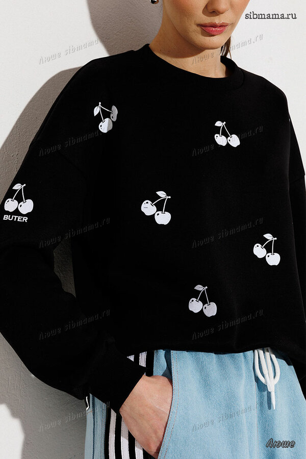 Джемпер из плотного трикотажа интерлок, вишенки флок. 🍒🍒🍒Новинки коллекции BUTER Весна 2026