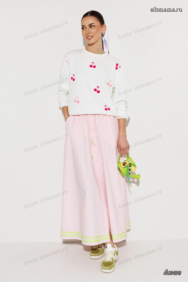Юбочка из плотного шуршащего хлопка. На джемпере вишенки флок 🍒🍒🍒 бледно розовые и фуксия.