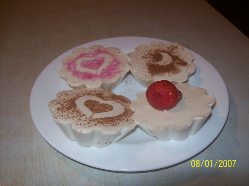 А собственно все тоже самое ( сливки взбить с сахаром, вмешать аккрутно маскапоне + желатин) только основу не делала.  |