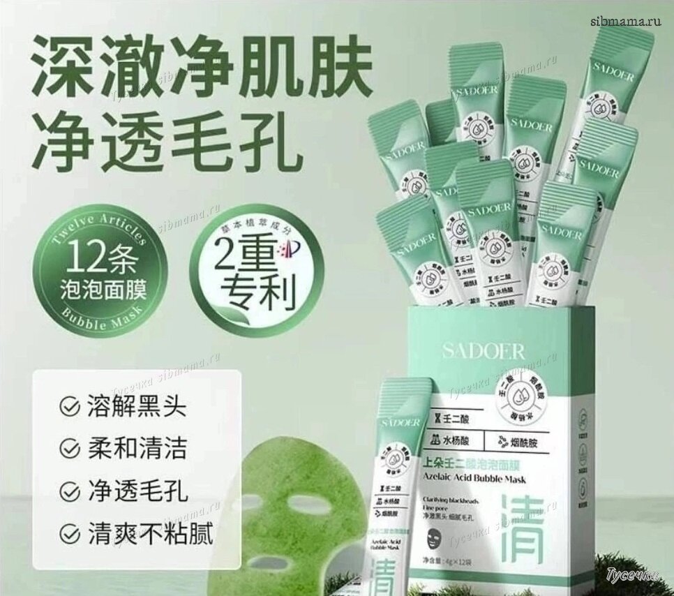 Увлажняющая кислородная пузырьковая маска с азелаиновой кислотой 12шт - 132руб