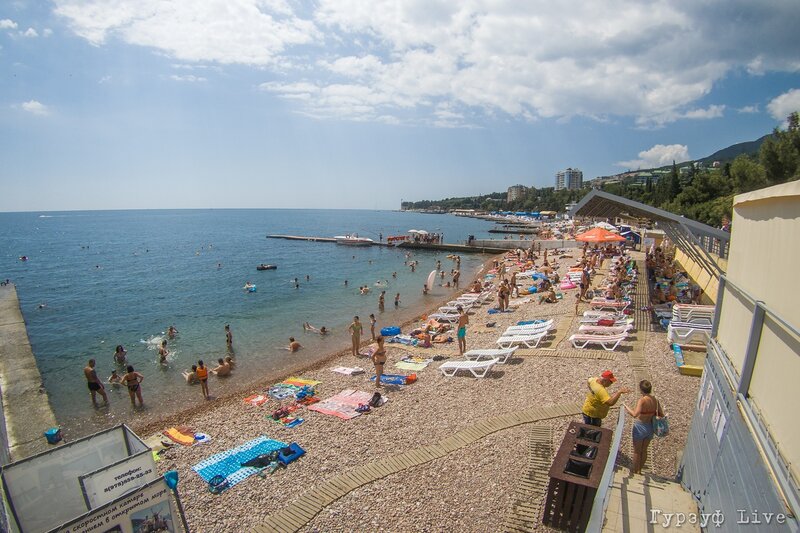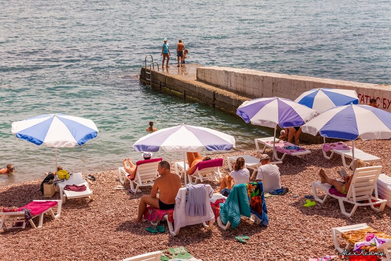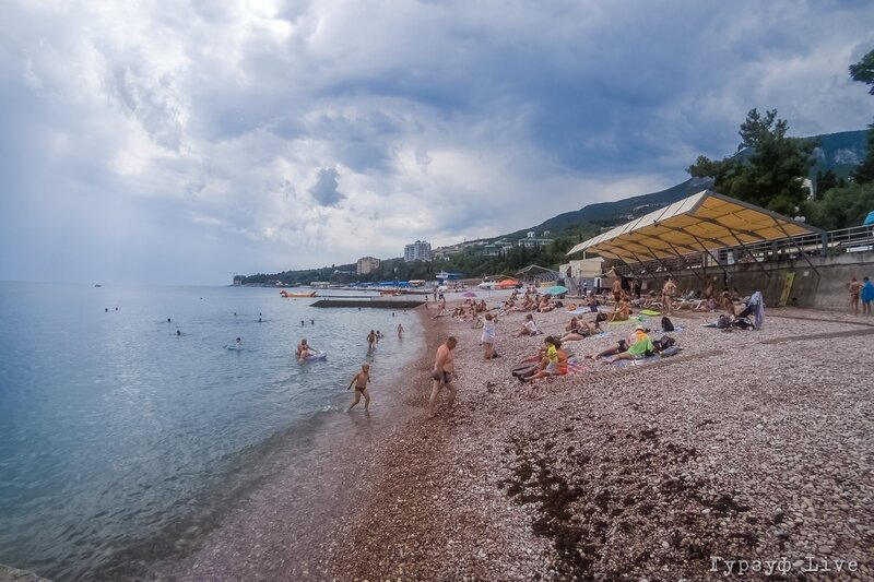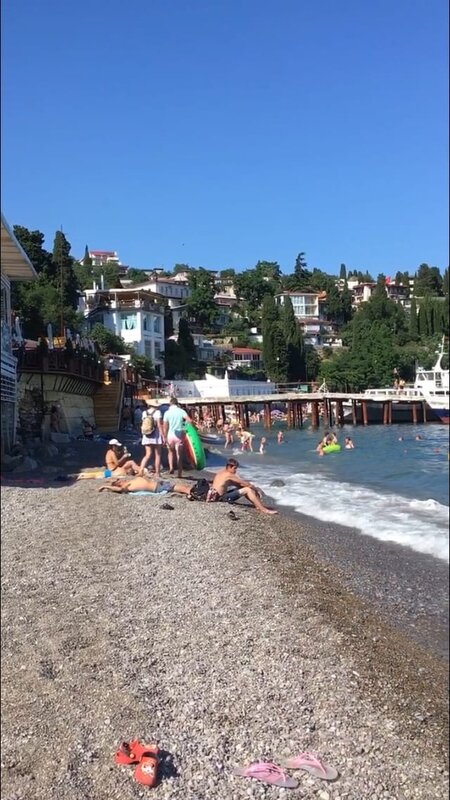 На остальных завозная, розовая(в первый год удивлялась даже, как так, розовая галька), вот такую не люблю, она мало обкатанная и шершавая какая-то, спрячу, так как фото не мои(надёргала в группе местной свежие июльские), в этом году дома сижу. Видно, что завозят много, в море вход тоже по розовой в самом начале.