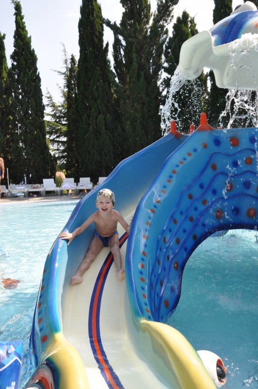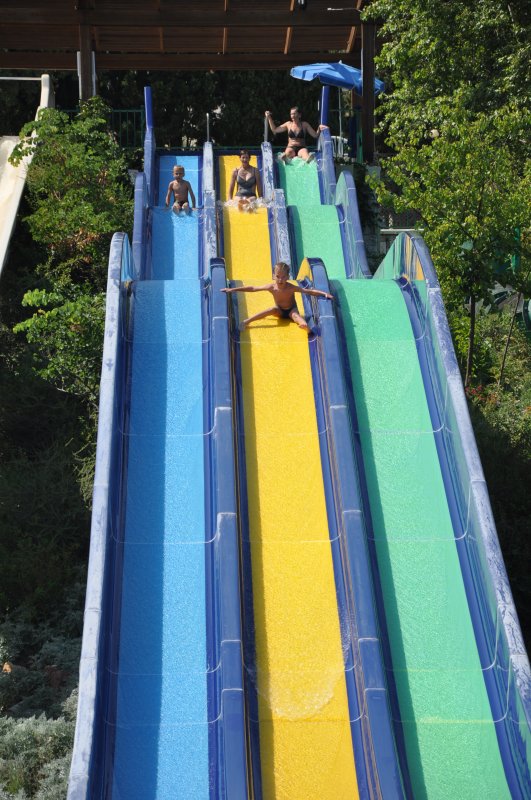 Вот с такой горки можно и детям съехать, но только умеющим плавать - бассейн, в который приземляешься, довольно глубокий:
