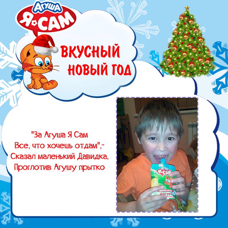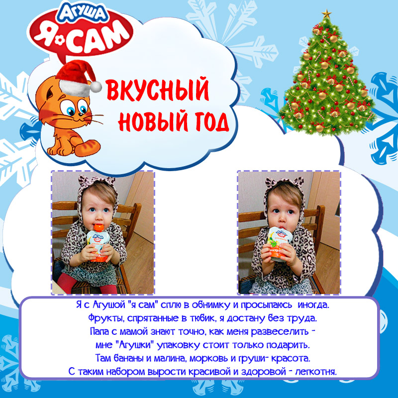 Это моя внучка Кариночка. Она у нас большая любительница "Агуши".