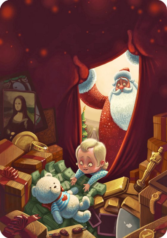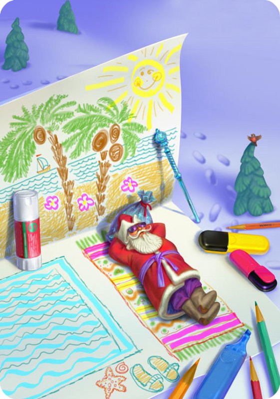 И все, кроме Лизы, угадали правильную карту! Хотя вот у маленького катерочка на самом деле отпуск или его, как малявку, отсадили в лягушатник, чтоб под ногами не путался. А Деду какой шик валяться под нарисованными пальмами? И солнышко не греет, дедуля в валенках :haha: Да и вообще, работает всего один раз в году, не перетрудился так то