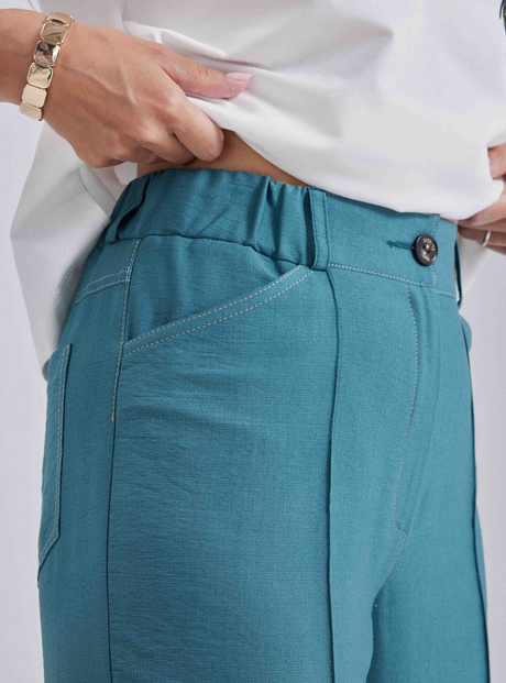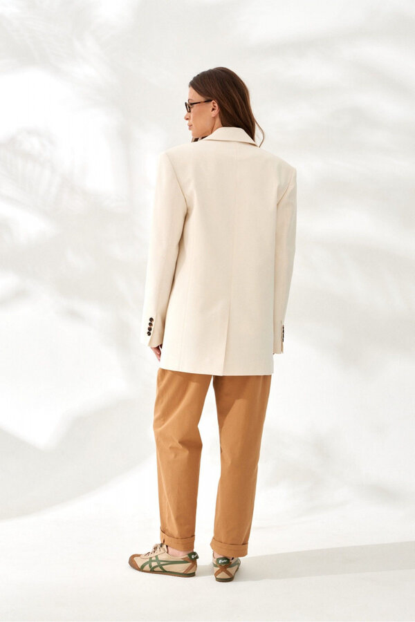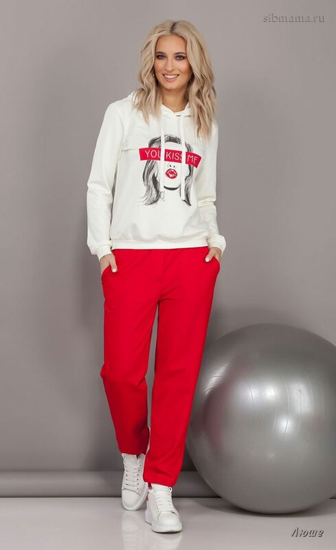 Доча носит размер 44-46 и ее рост 160см. Взяли костюм 46 размера, рост 158-164см. Брюки сели хорошо, чуть свободновато.