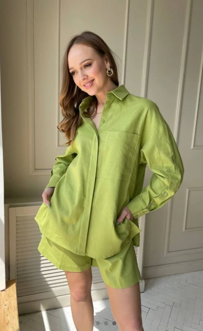 Салатовое платье из льна, уже отдала на переделку)) Портниха сказала что завидует))