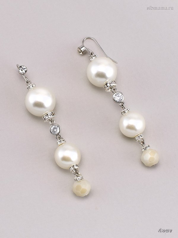 СЕРЬГИ С ЖЕМЧУГОМ, ФИАНИТАМИ И ХРУСТАЛЕМ 2011*7560