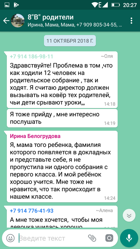 Сообщения пишу на эмоциях,возможно,не правильно строю предложения и ошибки,но это от спешки,что б высказаться(написать то,что тревожит).Я не обижаюсь,потому,что сама бы наверно усомнилась,что такое возможно.К сожалению видеозапись предоставить не могу,но если покажете как вставить фото,я предоставлю скриншоты сообщений в вотсапе,где сообщили о род.собрании,мои ответы,что считаю не правильным обсуждать чужих детей.Ну что еще?фото страницы дневника,с записью о род.собрании ну и приглашение в школу, по поводу моей жалобы.Мне 43 года,я толком не понимаю даже значения слова троль.С телефона можно вставить фото и км это сделать?На Хабмаме как то не делала этого никогда,не умею.Могу еще копию своей жалобы показать,но она написана от руки,но я сделаю это.Надеюсь,что смогу.или дайте номер любой,скину на ватсап а вы покажите здесь.Мне нужна поддержка сейчас,вопрос стоит о спокойствии дочери в школе,,и хоть я и взрослая но советы ваши меня очень поддерживают.Если директор даст ответ,что у них все было в рамках позволенного и не было нарушений,тогда я уже смогу написать на Хабмаме,это уже будет уже открытая борьба.Но пока я вроде как еще надеюсь,все решить в стенах школы.