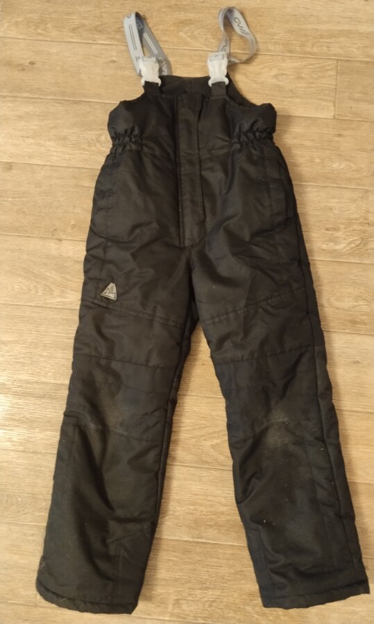 Полукомбинезон застегивается на молнию с ветрозащитной планкой, имеет два кармана и усилитель ткани на коленях и внизу внутренней части брючин.