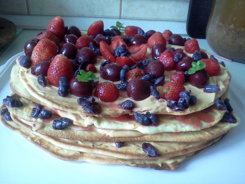 а вот и моя "Баловница" . делала очень давно. уже не помню из чего тесто. крем вар сгущ + домашний сыр маскарпоне |