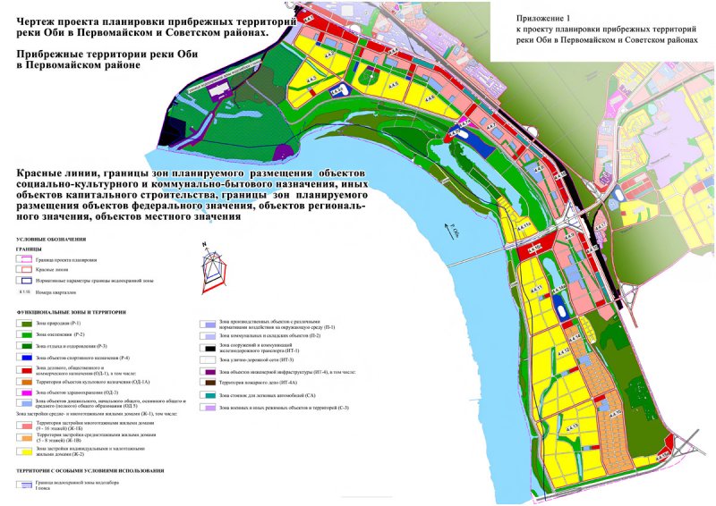 Публичные слушания по проекту планировки прибрежных территорий Оби в Первомайском и Советском районах состоятся 27 марта. Соответствующее постановление опубликовано в бюллетене органов местного самоуправления на сайте мэрии Новосибирска. В документации говорится, что проектируемый участок на правом берегу занимает 1960 га, с востока он ограничен Бердским шоссе, с запада — берегом реки Обь, с севера — Комсомольским мостом (железнодорожный мост рядом с «Разъездом Иня»), с юга — административной границей Первомайского района. На левом берегу, в Советском районе, проектировщики захватили жилую территорию ОбьГЭСа.