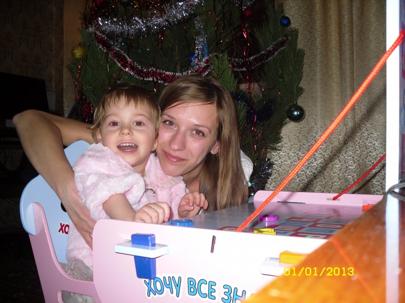 Здравствуйте. У нас так много новостей, что начну с нового года. Новый год Ксюша встречала с нами. Очень хорошо себя вела. Она поспала до 7 вечера, а потом мы ей одели красивое платье и шубку. Она была похожа на принцессу. Кушала все, что было на столе. Она умница, не привередливая к еде. Не дождавшись 12 мы подарили Ксюше подарок. Ей очень понравилось. За партой Ксюше очень удобно сидеть. Я переживала, что будет не очень, но все просто замечательно. Стульчик очень удобный. Она за партой сидела где-то час. Невозможно было оторвать.