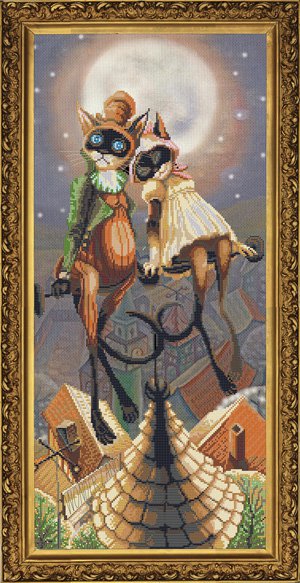не сложнее остального, я думаю. Только начинать с центра, т.к. канва тонированая. Ну, или как следует разметить перед началом работы. А так каунт 16, частичный зашив. Легко и интересно должно быть