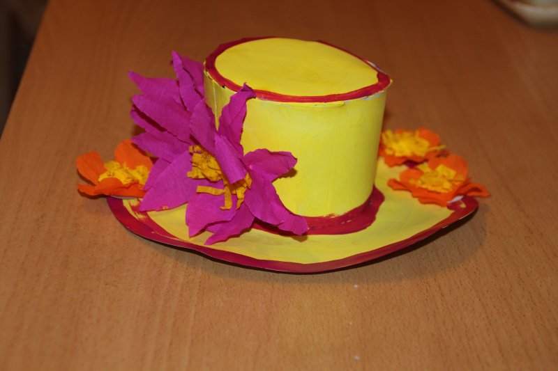 Девочки, зацените шедевр))) Вчера с Риткой сделали поделку в сад, по теме "одежда". Шляпку я клеила, а остальное все Рита делала. Цветы ободрали с давней ее поделки из кружка, уверяет, что делала их сама)