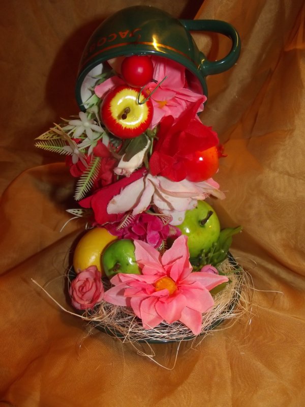 красота! а кружка, из которой все сыпется, на чем держится?