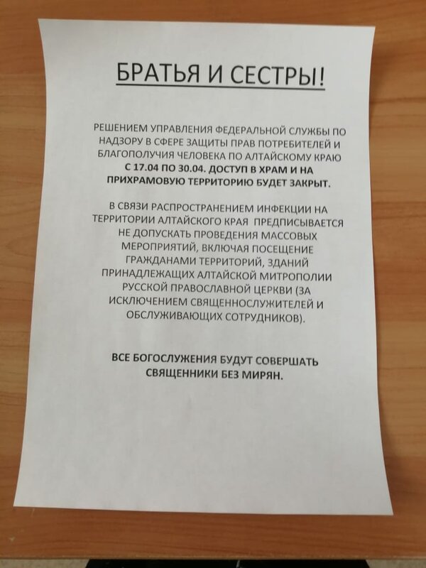 Ранее РПЦ разослала во все епархии рекомендации о проведении мероприятия во время Страстной недели и на Пасху. Прихожанам рекомендуют оставаться дома и не посещать богослужения.