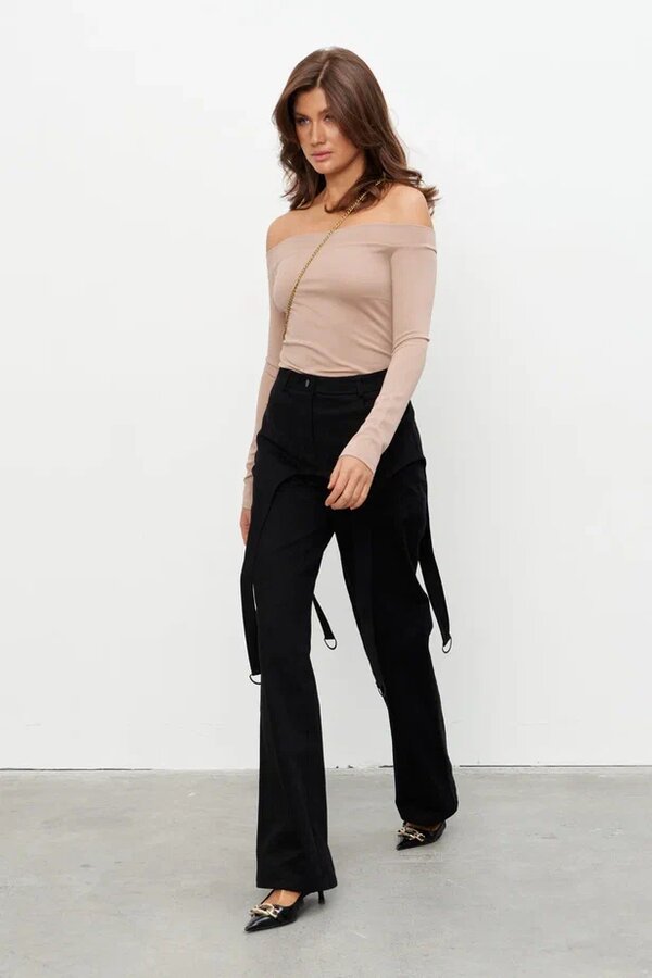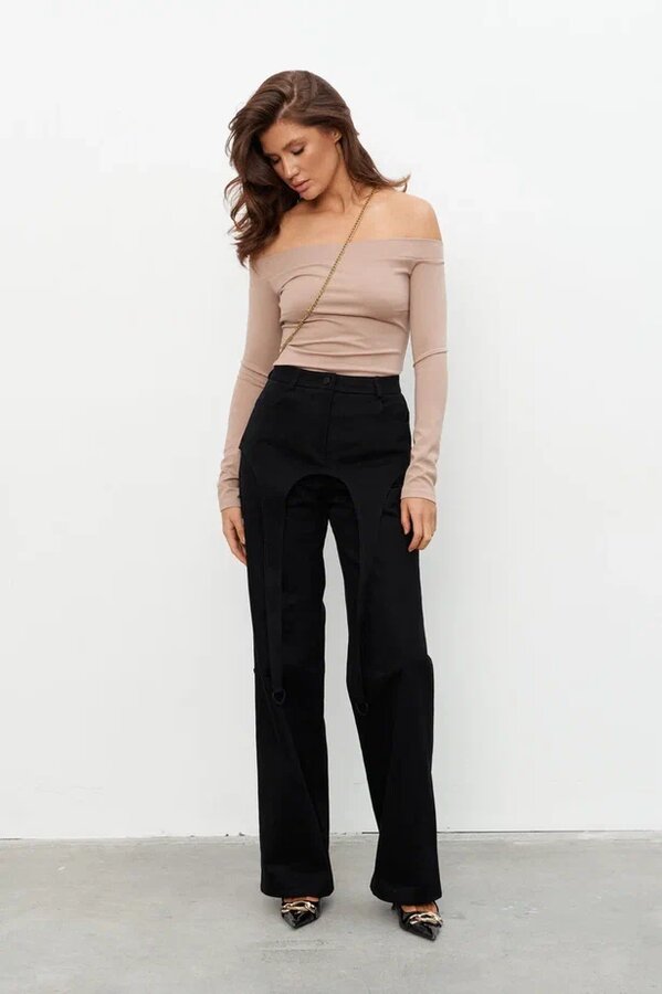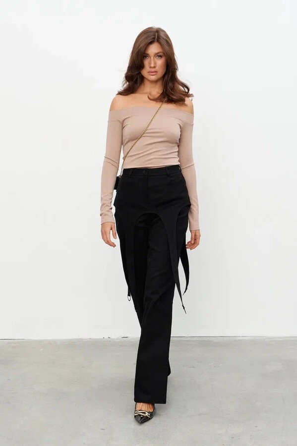 • Джемпер из трикотажного полотна прилегающего силуэта с открытыми плечами. Отрезная деталь по верху изделия плотно фиксирует изделие на фигуре.Скрыть