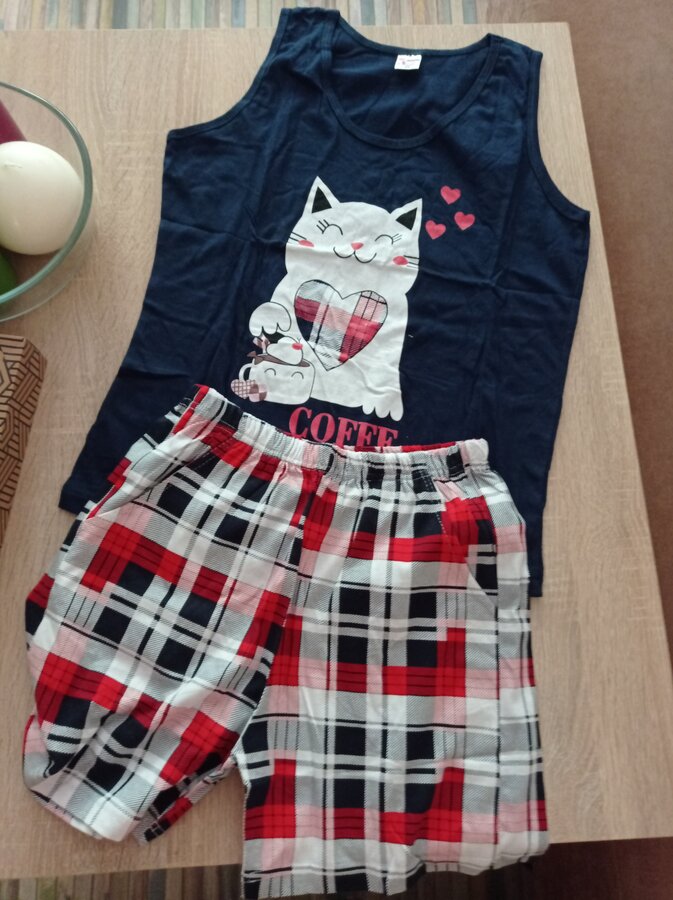 Майка, шорты - хлопковое, качество хорошее, я бы сказала на размер большемерит. В карточке продавца указано что маломерит.