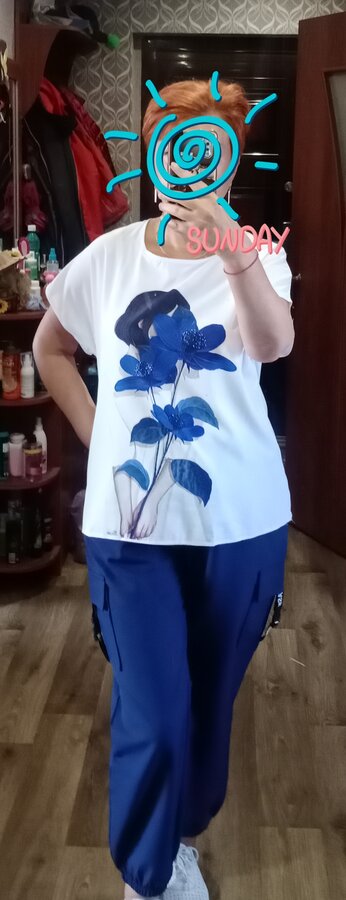1. Пересорт по размеру футболки - огорчило, но отдала ее маме. Ей в самый раз. Мне же пришел цвет вообще не мой (был без выбора цвета- по дому придется ходить в ней )