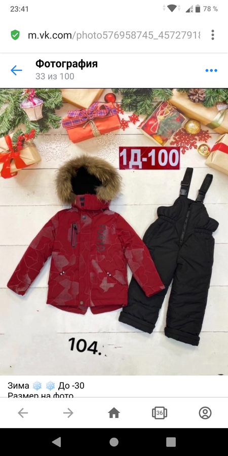 Зимний комплект 104 размер. Нам на одну зиму точно. Толстенький, плотный. По теплоте в носке узнаем.