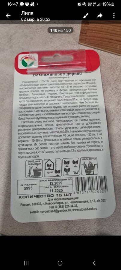 Баклажановое дерево планирую вырастить в этом году. В магазине, где брали семена, сказали, что один мужчина вырастил это дерево и сказал, что это лучшее, что произошло с ним в этой жизни