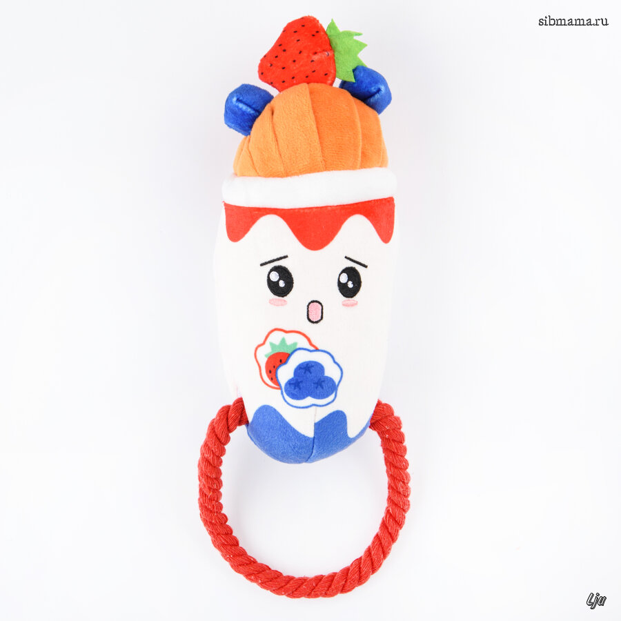 Игрушка Mr.Kranch для собак Йогурт плюшевая с канатиком и пищалкой 19 см СКИДКА 40%