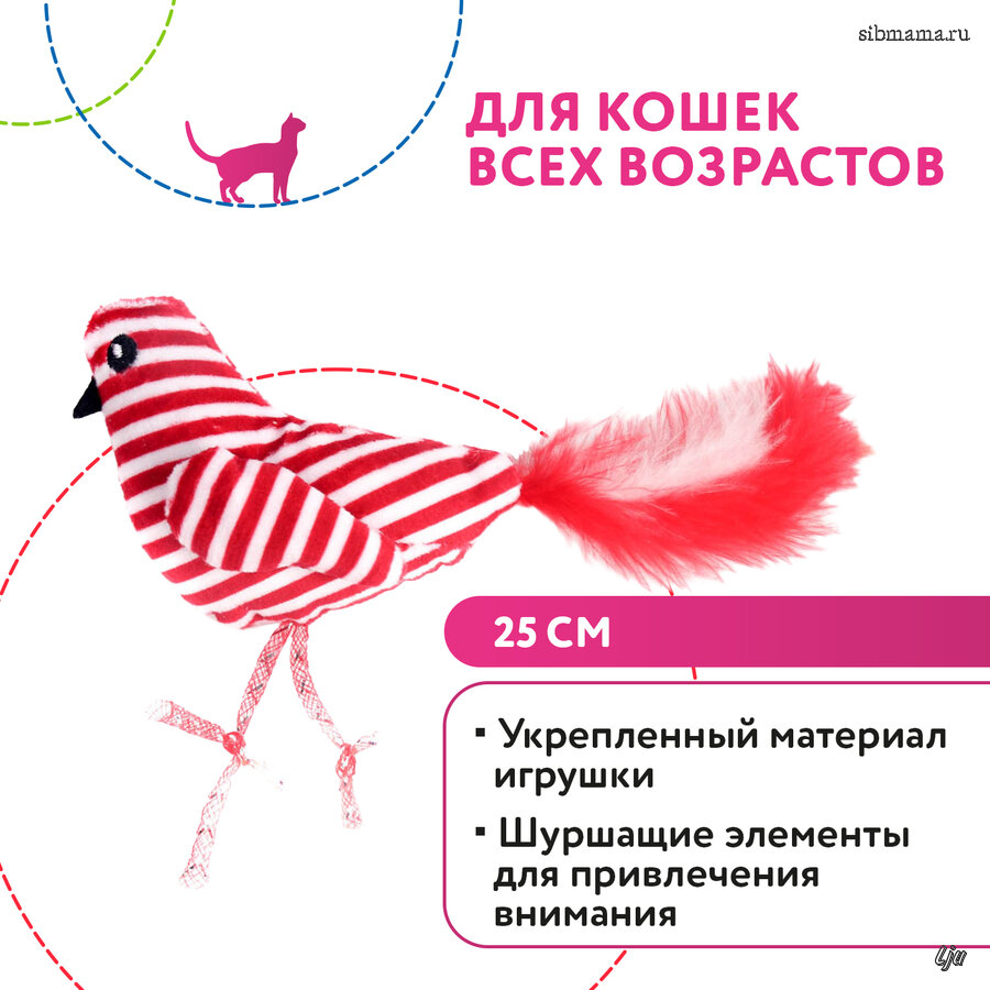 Petpark игрушка для кошек Птичка с перьями 25 см красно-белая СКИДКА 50%