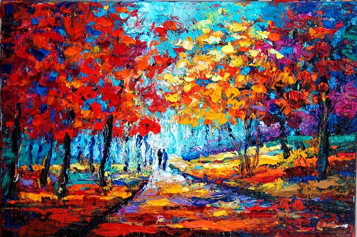 Оказалось труднее, чем я думала. Я сначала посмотрела МК в ютубе, потом самого Афремова. В итоге смешала обе техники и попробовала... Афремов накладывает тон мастихином, я тоже так сделала. В итоге сколько лишней краски на холсте у меня получилось! Приходилось много убирать лишнее. Поменяла несколько мастихинов, в итоге так и не нашла идеального. :oops: Да еще и сделала перерыв в два дня, что тоже отрицательно сказалось на качестве. :haha: Доделывала уже лишь бы доделать.