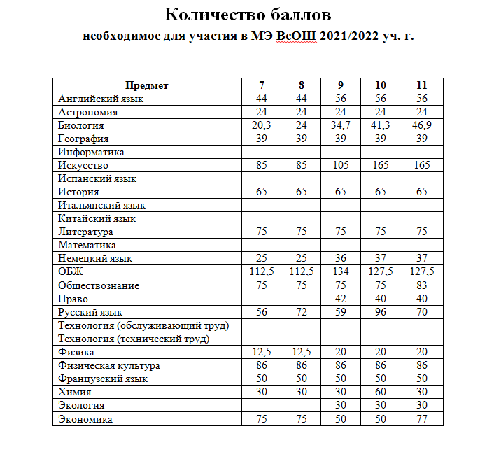 Вообще интересно, по каким именно предметам нет баллов. По всем предметам, по которым МЭ в ближайшую неделю, у нас в школе организаторы, насколько я знаю, баллы знают и детей известили.