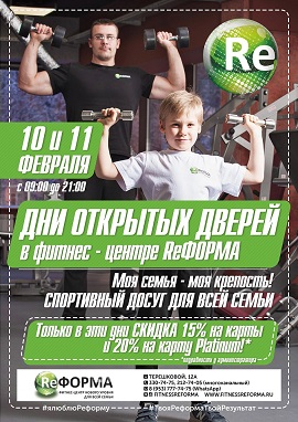 ПРИГЛАШАЕМ НА ДНИ ОТКРЫТЫХ ДВЕРЕЙ в фитнес-центре ReФОРМА 9 И 10 ФЕВРАЛЯ!!!