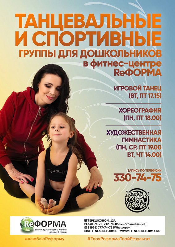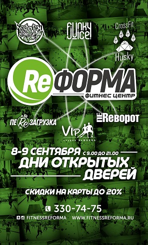 Более подробную информацию уточняйте у администраторов фитнес-центра ReФОРМА по телефонам: 330-74-75, 212-74-05.