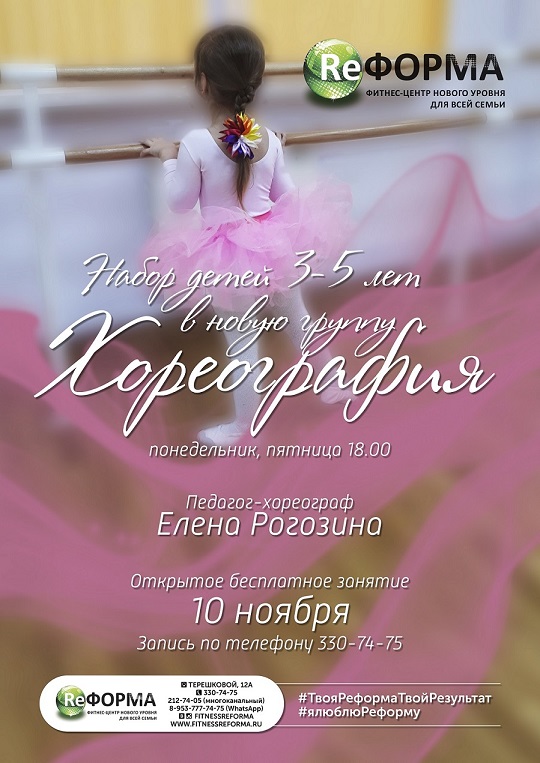 Приглашаем самых маленьких любителей танцев и спортивных занятий на ДНИ ОТКРЫТЫХ ДВЕРЕЙ в фитнес-центр ReФОРМА 10 и 11 ФЕВРАЛЯ с 09:00 до 21:00!