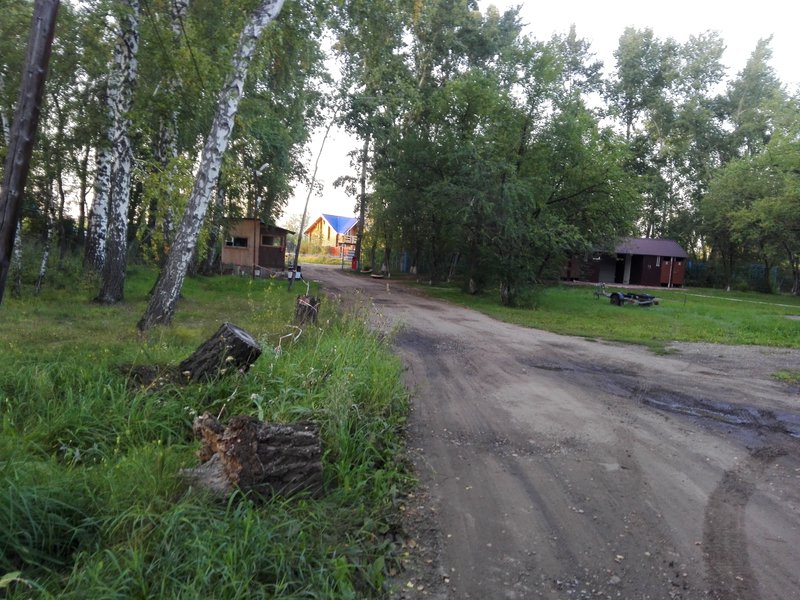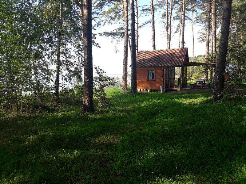 - малюсенькое озерцо совсем рядом, видно из домиков, а также и Обское, через дорогу и лесок идти 5 минут.