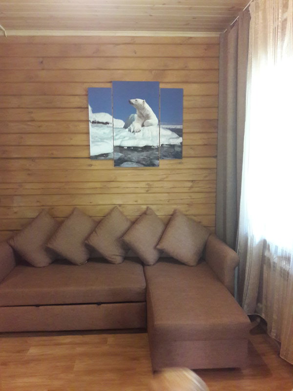 Главная фишка этой базы это конечно новые коттеджи Аврора и Фортуна. В номере прям пахнет свежим деревом. Номер уютный двухкомнатный, все чисто. Есть чайник, холодильник и главное микроволновка.