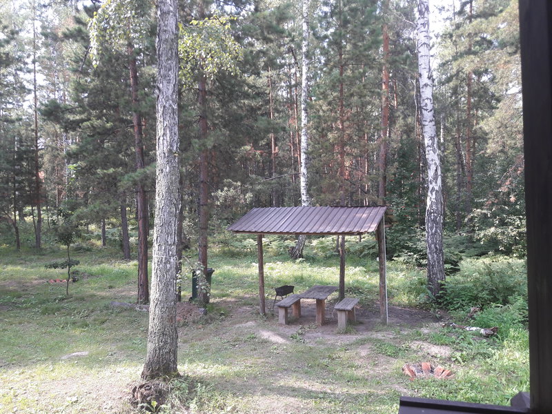 - на территории базы растет черемуха и красная смородина, в лесу через дорогу малина и грибочки.