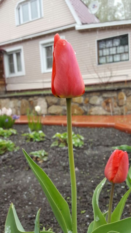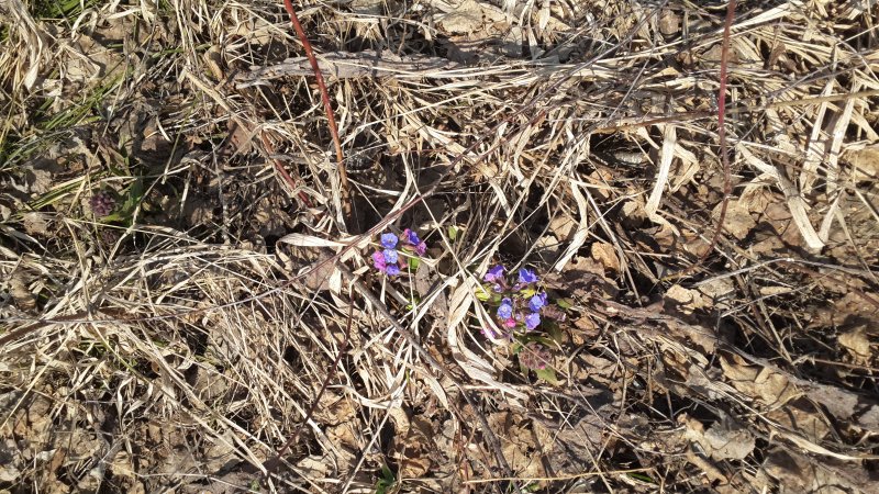 А вот нашла на телефоне фото , сделанное еще в апреле, когда еще ничего не цвело ..... и маленькие Медунки только проклевывались