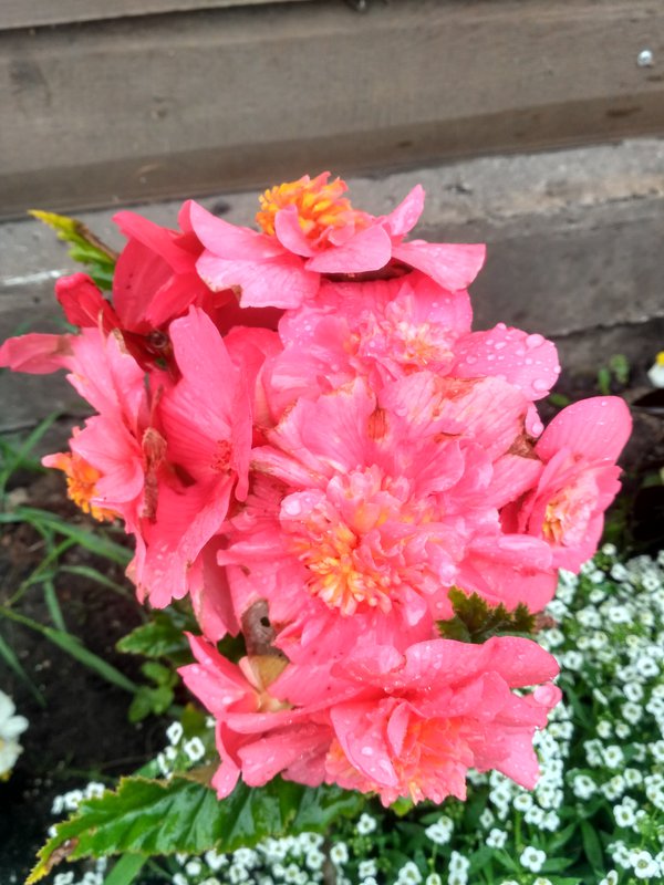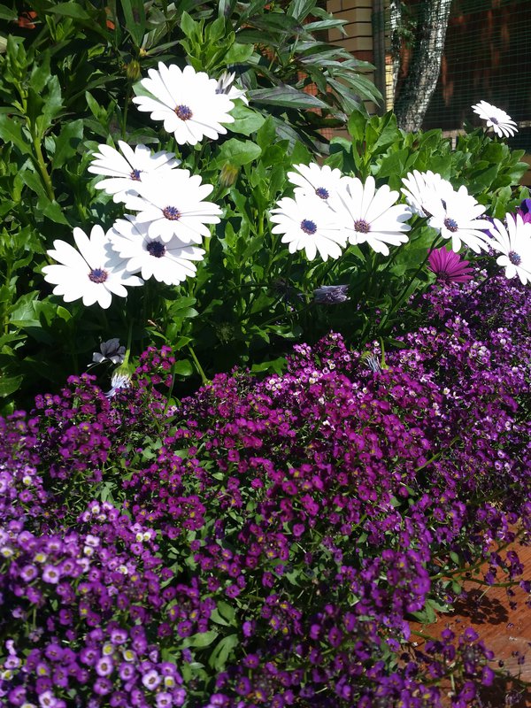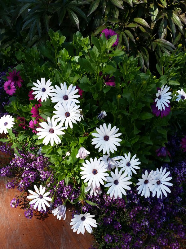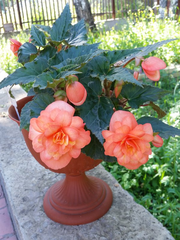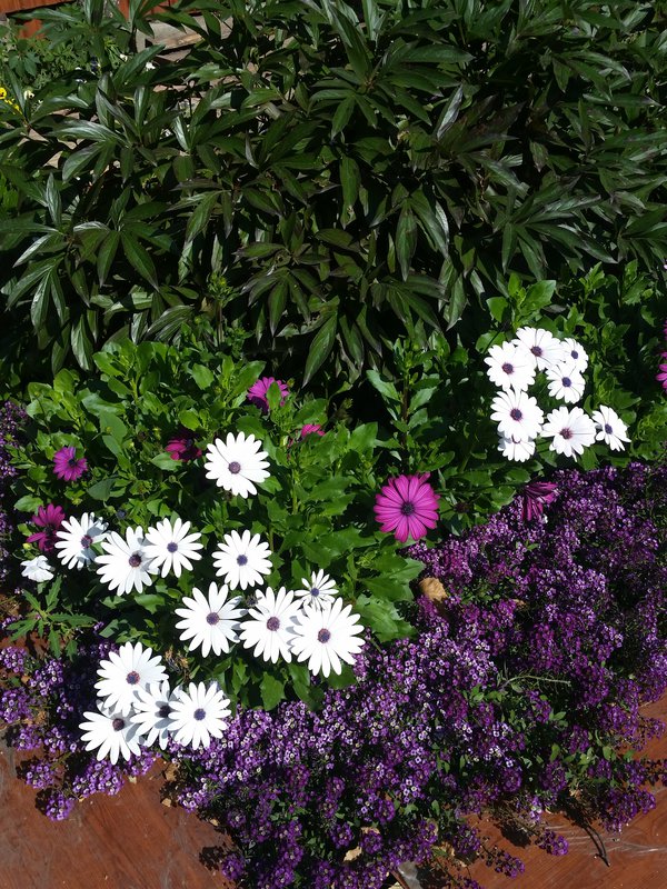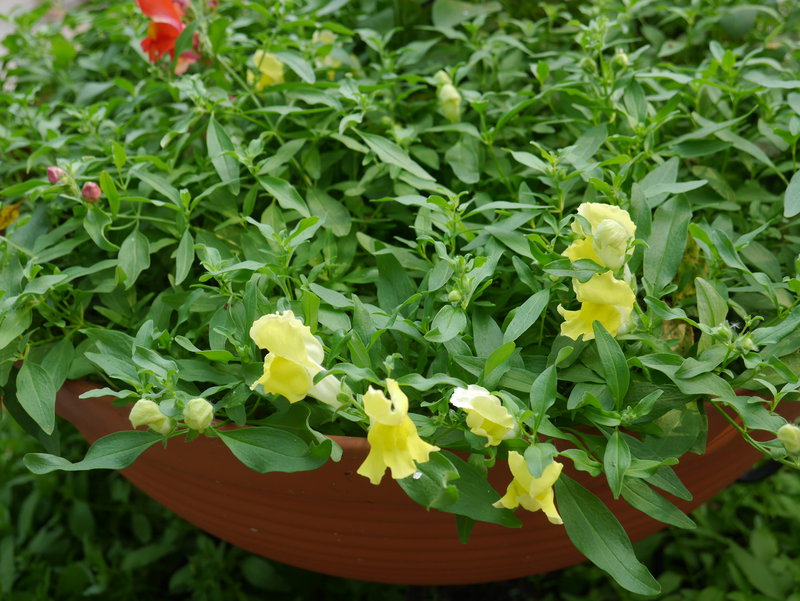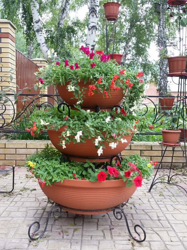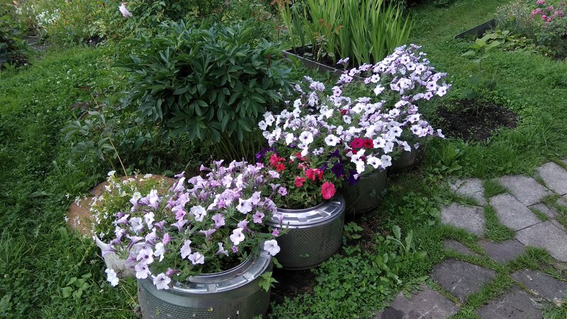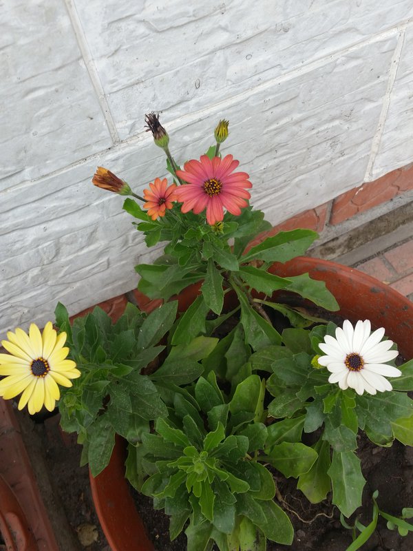 бархатцы в этом году поздновато взошли с таким маем ( я сеяла на улице в рассадник) цветут сейчас вовсю, а что в горшке, так петуньку залило и пересадила их туда