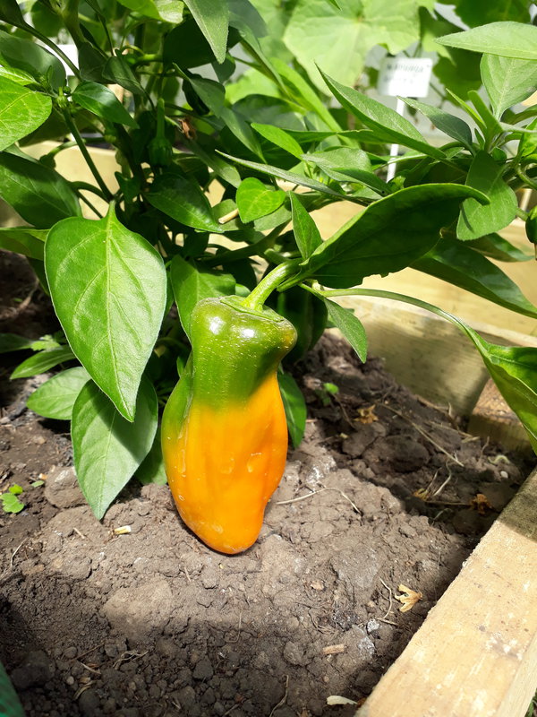 Самыми первыми заплодоносили декораши, еще в середине июня 15 числа, с 23 чисел присоединились ампели. Огурчики только пошли. Перчик такой стоит неделю, честно говоря не знаю готов парень или нет)))