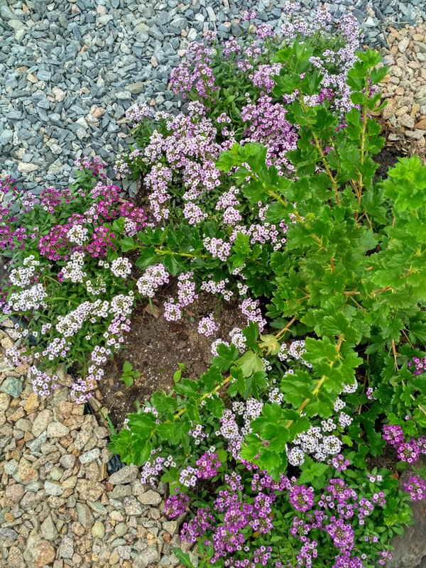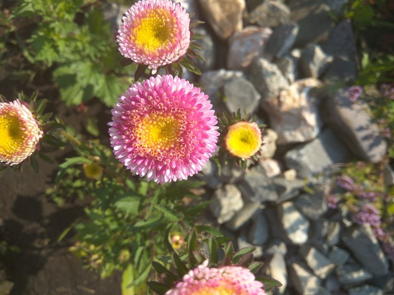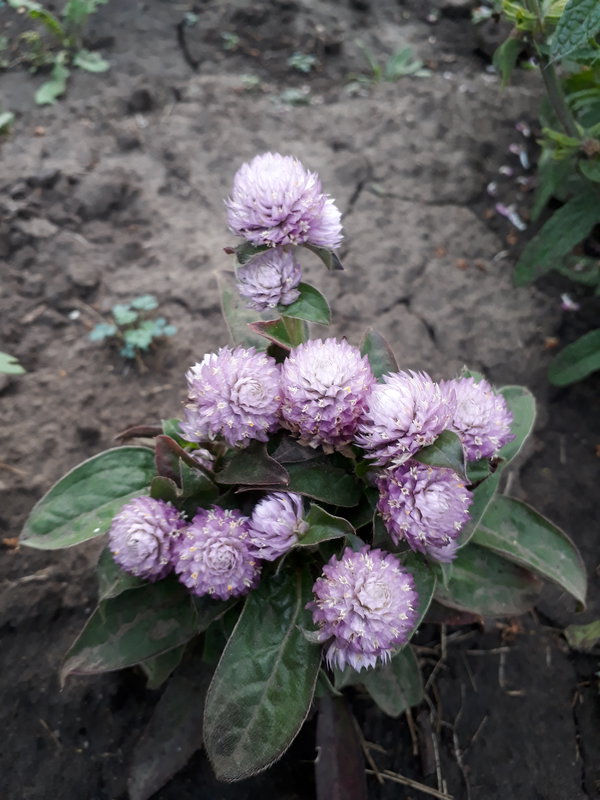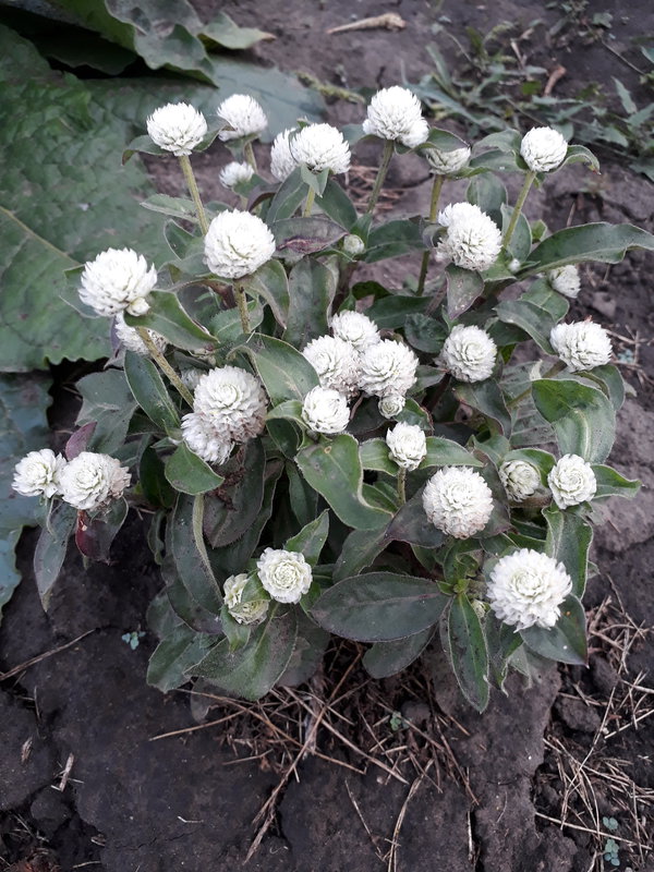 3. Гомфрена из микса. Мне достались только белые и сиреневые. Всхожемть хорошая, очень низкие. Довольно много цаеточков, при этом не обижаютмя на дождь и ветер. Сухоцветы, поэтому крепкие симпатичные ребята. Осенью соберу детям на поделки