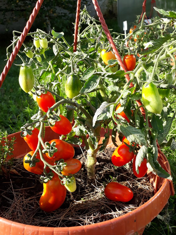К сожалению, сказать что я полностью раскрыла качества этих ампелей не могу. Связано это с тем, что навыков выращивания растений в горшках у меня нет. и я допустила несколько ошибок в размещении. в рассаде были быстрые и ранние, в какой-то момент начали заваливаться. Всхожесть у семян высокая. код 47 оказался очень вкусным, сладким, богатым на урожай. Красивой формы и цвета. код 44 был более аккуратен в плодовитости, но зато один из первых, на вкус тоже был приятен, хоть и ранний, но хуже 47. висели они у меня в теплице, что приводило к частому пересыханию, мне надо было переместить их, а я недопетрила. Жили они в 8 литровых горшках в подвесах с партнерами (базилик, чабрец, земляника) удобряла вашим Базакотом, все цветы в горшках получили его и томаты, раз в горшках сидели.)) Длина плетей была не более 80 см. Когда удаляла пасынки с обычных томатов перед этими застопорилась и не стала драть. Так и не нашла четкой информации гадо это или нет делать.