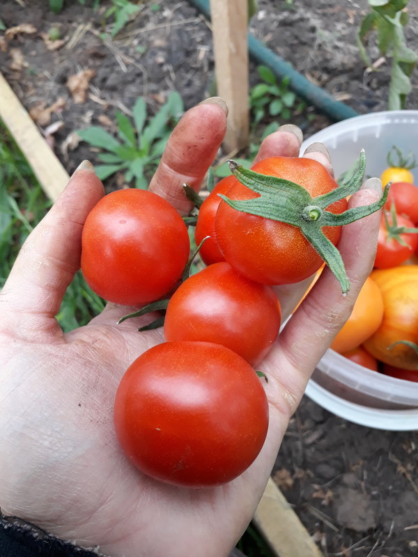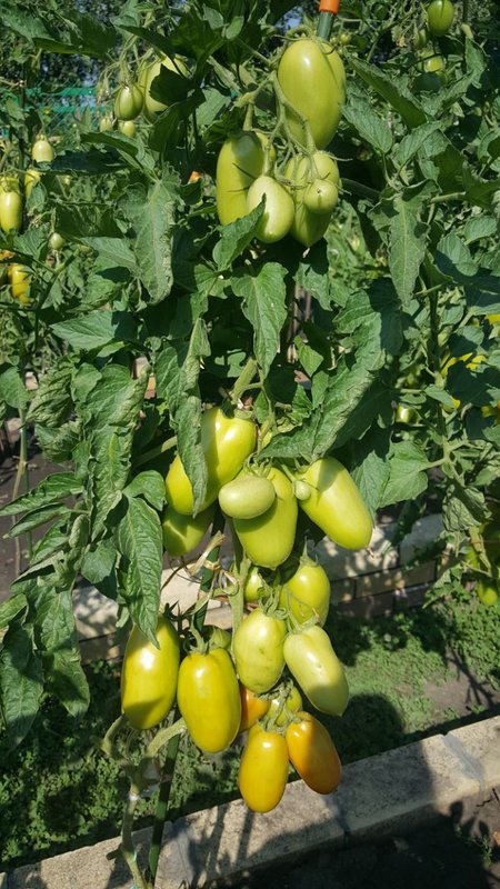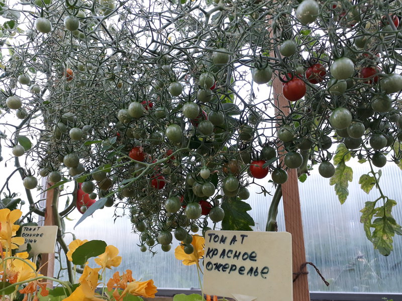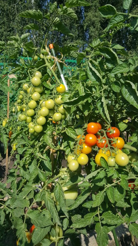 Томат gardeners light . В рассаде был очень успешен, цвел рано и плодики появились еще дома. По описанию должен был быть до 80 см. По факту этот подлец обманул меня, роста оказался модельного, пасынки давал активно, ранние плоды вкуса были посредственного ( впрочем удивляться то нечему, на то они и ранние, есть и на том спасибо) первые томаты начал навать еще в июне, жил в теплице. Я не смотря на уход, упустила мерзавца и он перерос, завалился и раскривился. Я разозлилась, но решила выводы на осень оставить и оказалась права. При наличит около 18 сортов и слабой сахаристости их в этом году именно этот сорт выравнил веус и стал сладким ( в отличии от проверенных мною и ожидаемых сладкими) и он дает ОЧЕНЬ много плодов, очень активный парень. В общем я его простила, но поняла что пригляд за ним необходим и место под высокие сорта. Размер плодов хороший больше черри, но при этом не крупный. Для консервации в небольшие банки по мне оптимальный и размер стабильный. С картинкой и описанием не совпадает.