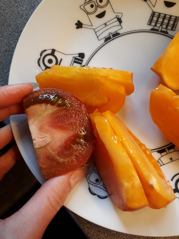 Но форма нифига не сливовидная у меня выросла, на фото видно, классический колобок только от африканских бабушки и дедушки. Вкус толстый рыхлый жирный мягкий и правда насыщенный, нет кислинки. У меня особо сладкими не были (но у меня в этом году и проверенные сорта сахаристостью не отличились). и еще один минус трескались (трескались многие сорта) и мавр один из тех что трескались сильно. форма стабильная, удобная размер оптимальный. про 20 плодов на кисти, сначала были крупны красивые яркие, но не многочисленные плоды, сейчас, а они все еще стоят в теплице (мавра выращивала только в теплице) усыпаны и действительно стали многоплодными. Ростиком был метр с кепкой, рос красивым и ровным, пасынки давал умеренно. цвет, коричнево-красный, мне понравился цвет.